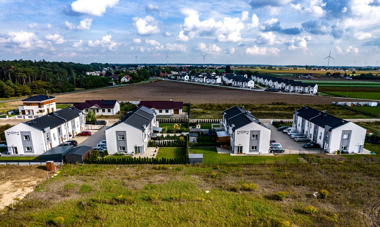 W Dominowie w pobliżu ulicy Średzkiej (tuż przy lesie) postawiliśmy osiedle dwumieszkaniowych domów w zabudowie bliźniaczej. Wybudowaliśmy 16 mieszkań dla rodzin, singli i seniorów.