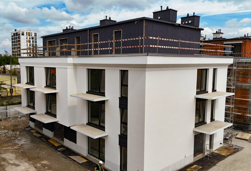 Lipiec 2025 | Kończymy prace elewacyjne na bud. A i rozpoczynamy prace elewacyjne na bud. B